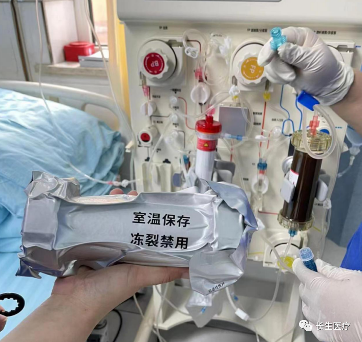 初战告捷,8月12日又出现一例尿毒症并发急性肝衰竭、心力衰竭患者,在第一例的成功经验下,我们再次顺利完成DPMAS(双重血浆分子吸附系统)+血浆置换(PE)治疗,现在该患者肝功能基本恢复正常,消化道出血得到有效控制,心力衰竭明显改善,目前恢复良好。